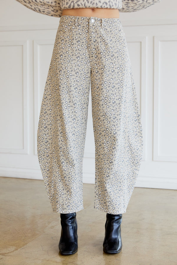 Sunday Edition Animal Print Barrel Pants in Taupe-Grey Animal