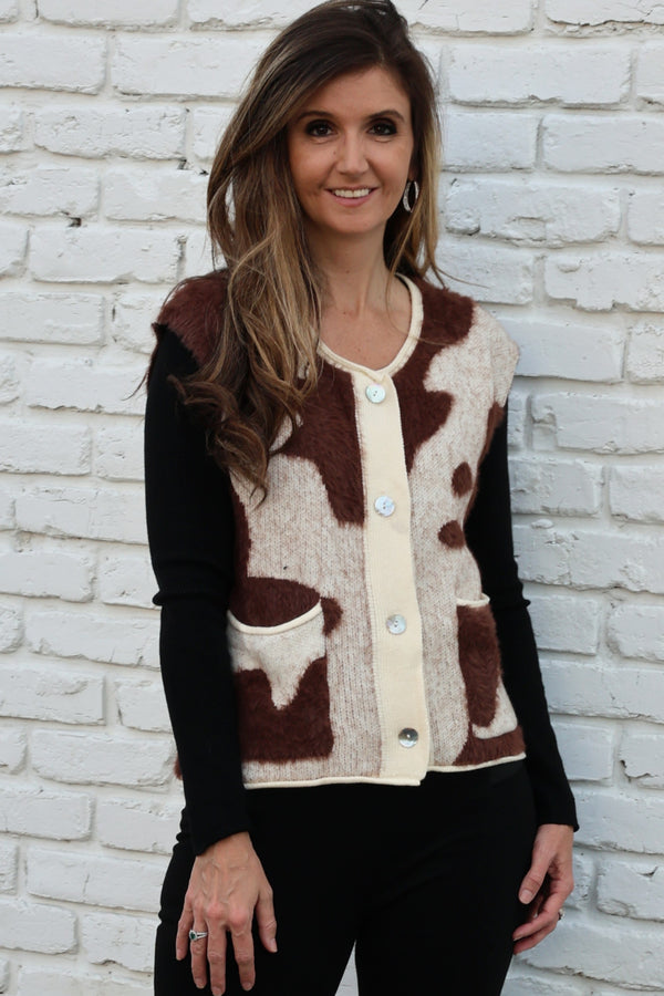 Sunday Edition Textured Sweater Vest in Cream-Brown Animal