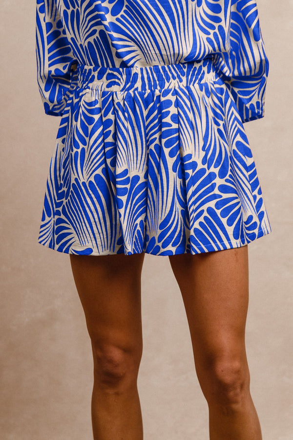 • BiBi Two Toned Printed Woven Shorts in Royal