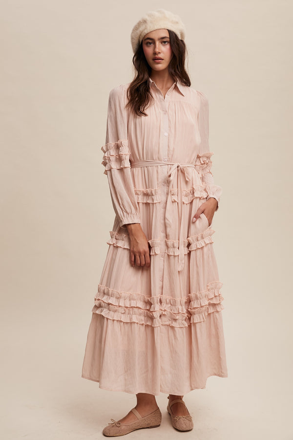 • Listicle Crinkle Fabric with Ruffle Details Maxi Dress in Mute Pink