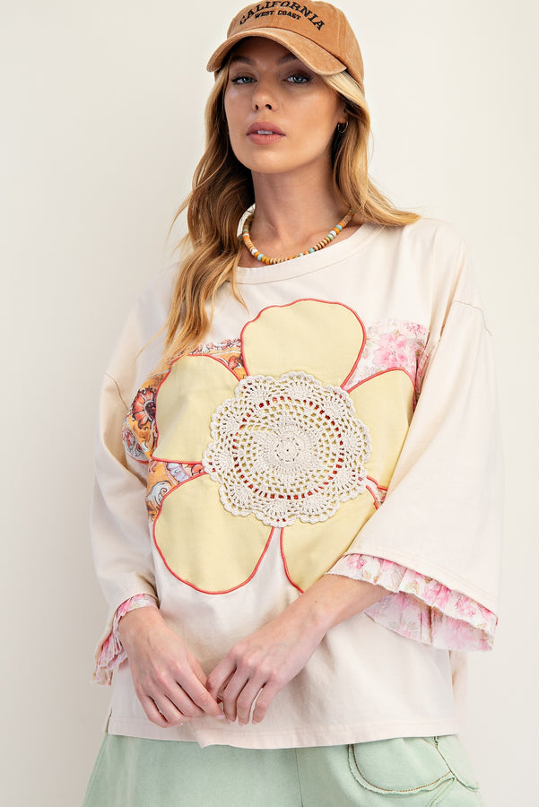 • Easel Mix N Match Patchwork Pullover Top in Oatmeal