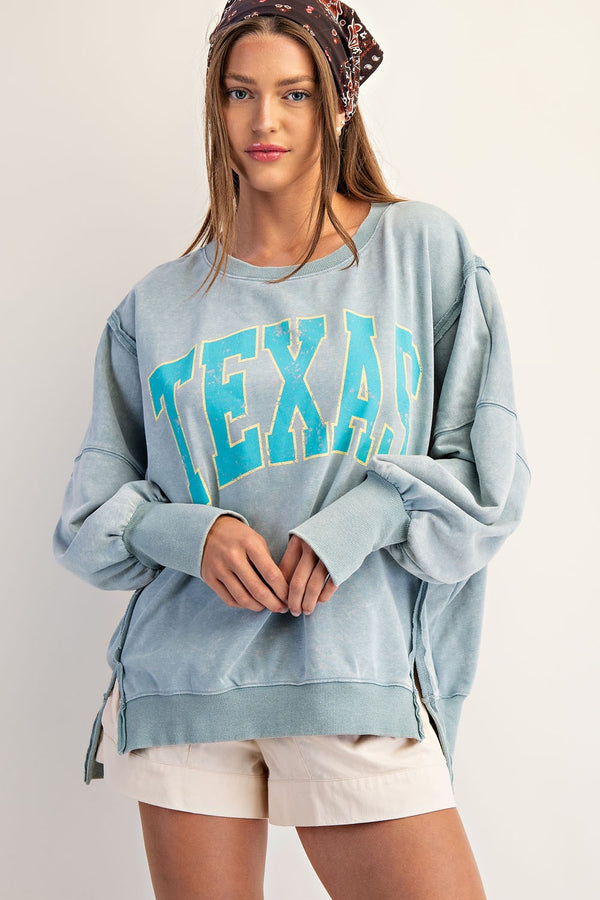 ee:some OVERSIZED Snow Washed "TEXAS" Sweatshirt in Dusty Blue