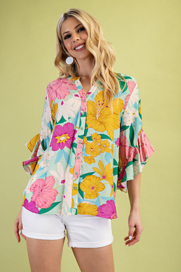 GiGio Floral Print Button Down Dress in Fuchsia Mix