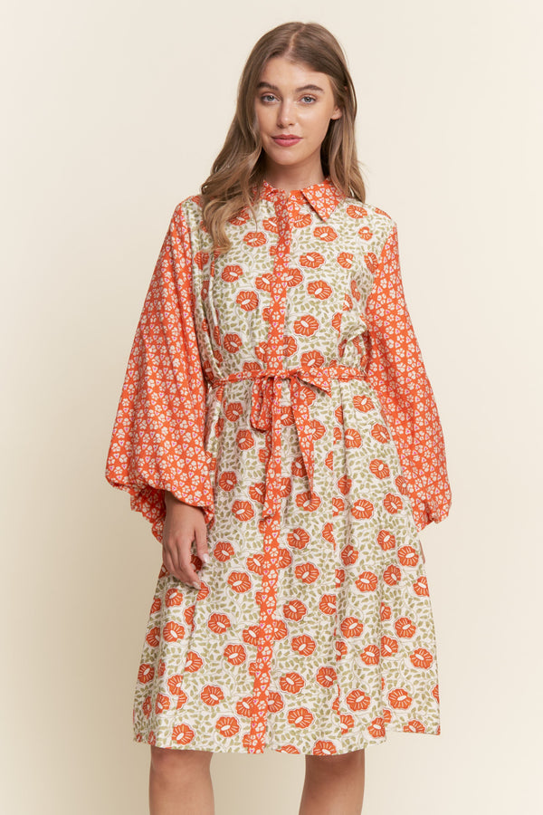 J.nna Mix n Match Floral Belted Dress in Orange Crush