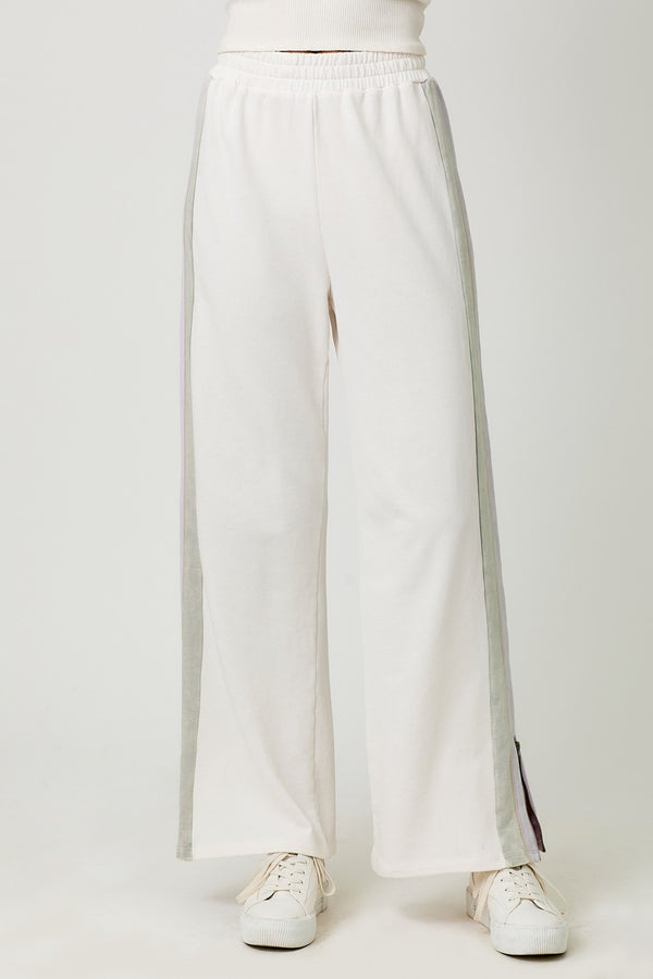 Mystree Mineral Washed Terry Knit Color Block Pants in Washed Ivory