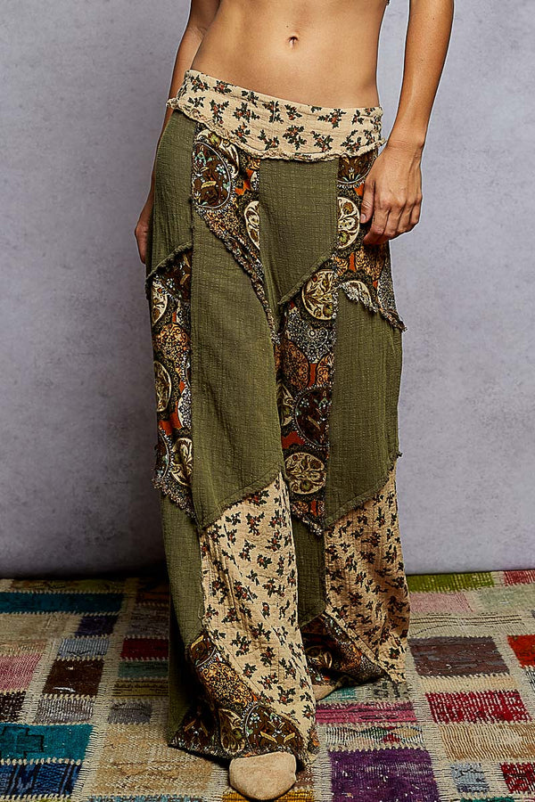 POL Double Gauze Patchwork Pants in Olive ON ORDER