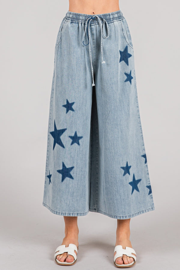 Sage+Fig Starry Cropped Denim Pants in Light Denim