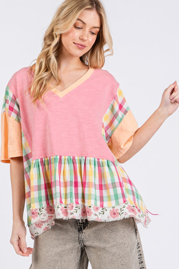 Sage+Fig Baby Doll Mix n Match Color Block Top in Pink