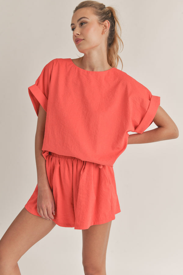 Klesis Solid Color OVERSIZED Top and Shorts Set in Coral
