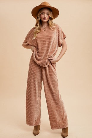 AnnieWear Textured Velvet Top and Pants Set in Ginger