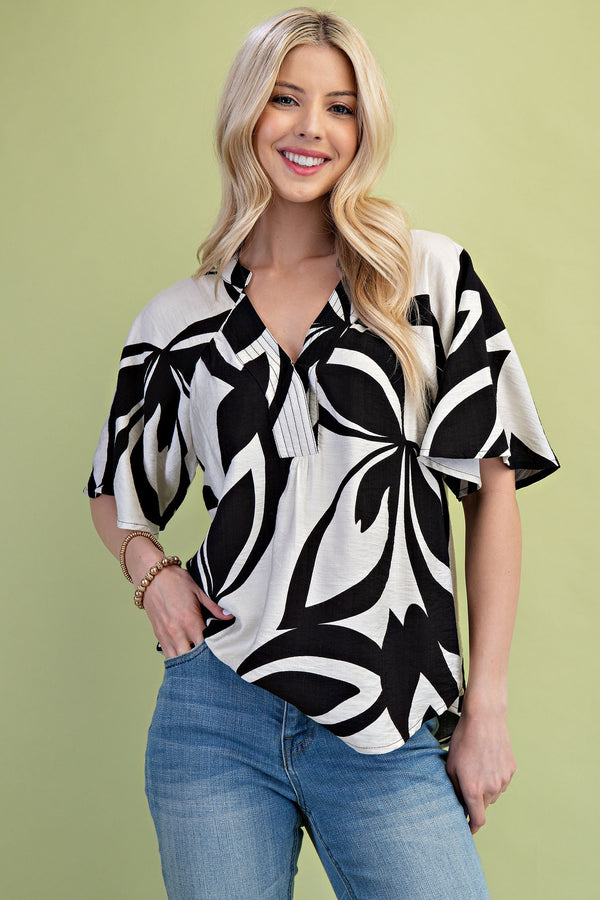 GiGio Tropical Print Top in Black Mix