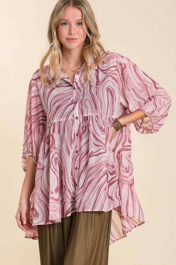 Umgee Lightweight Layered Tunic in Dusty Rose