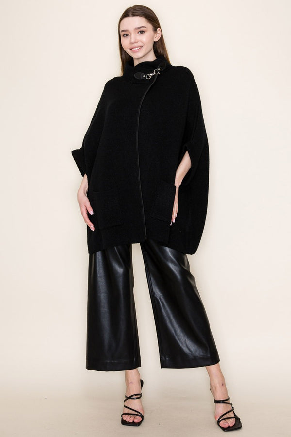 White Birch OVERSIZED Sweater Knit Poncho Top in Black