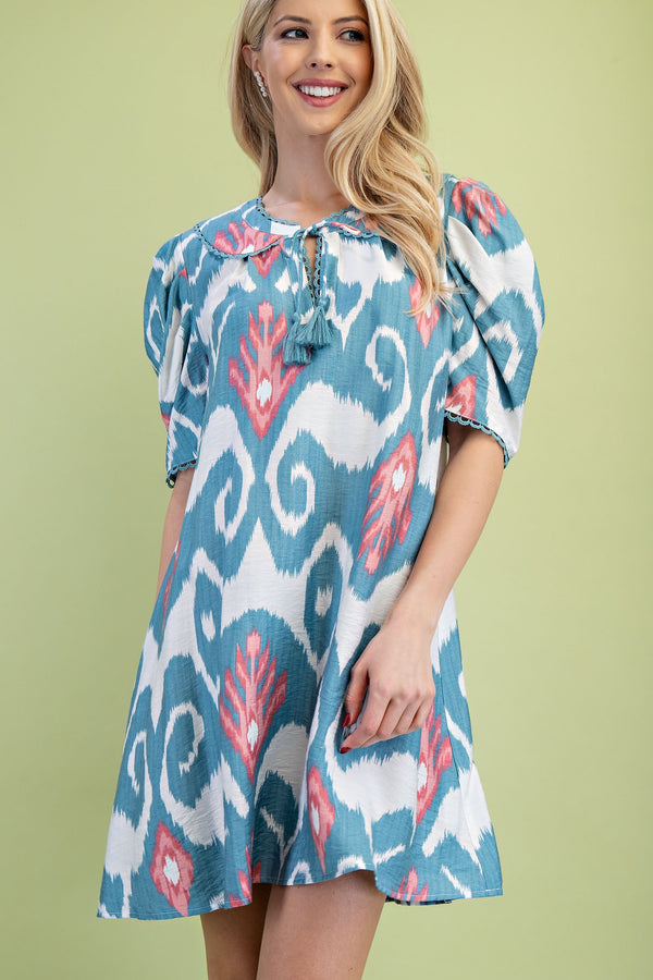 GiGio Peter Pan Collar Printed Mini Dress in Blue Mix