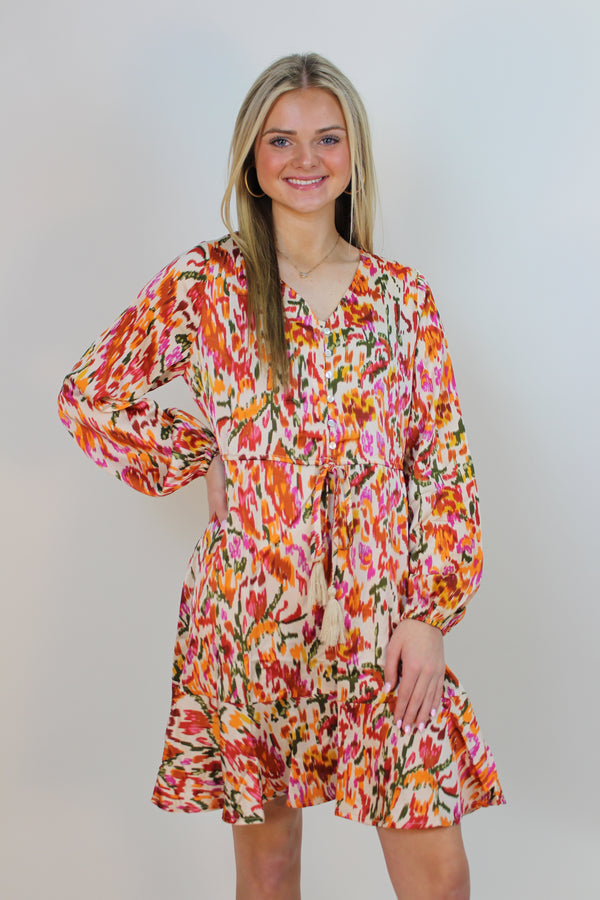 Jodifl Floral Print Smocked Bodice Dress in Rust