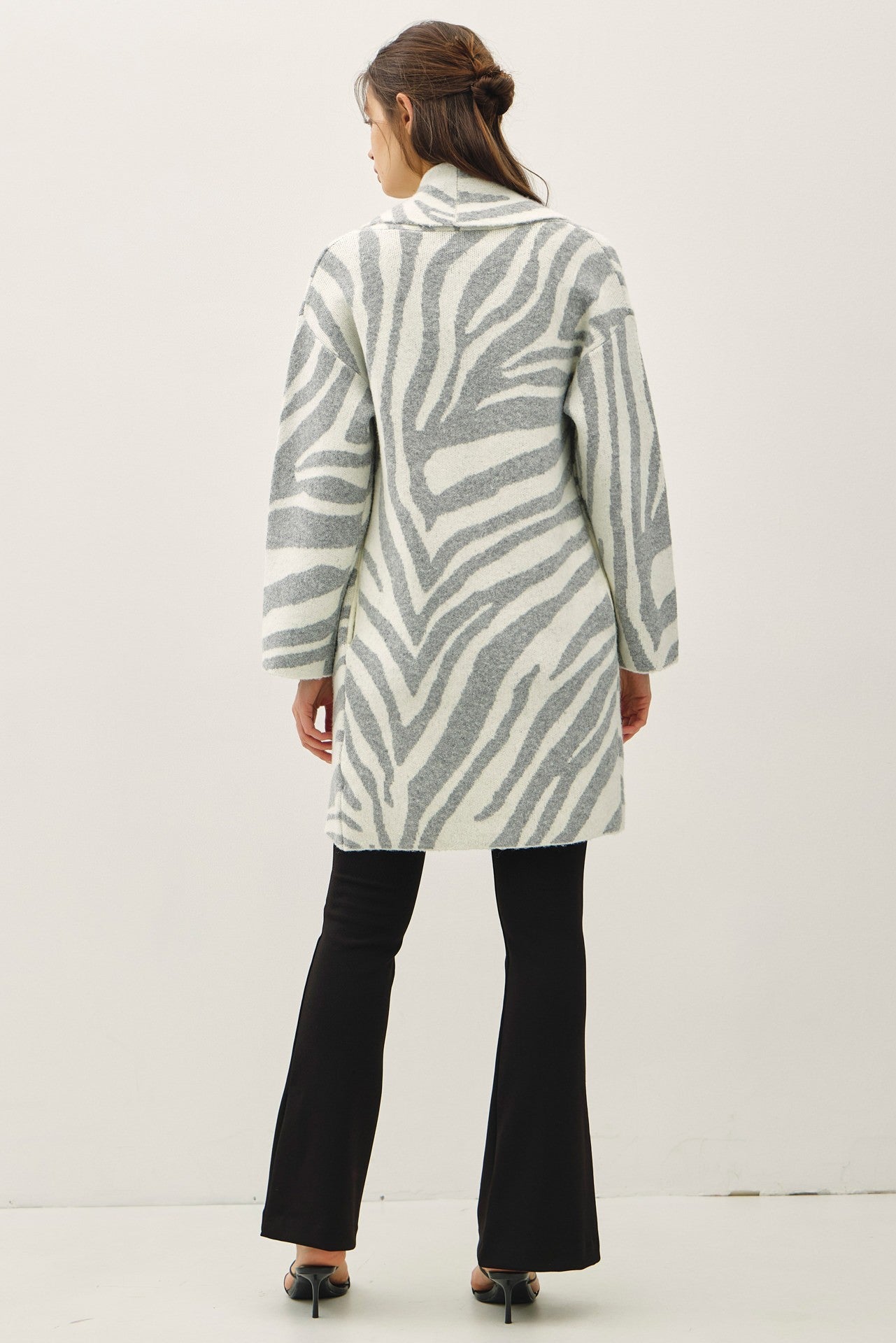 • Load image into Gallery viewer, be cool Zebra Print Wool Blend Cardigan in Heather Grey
