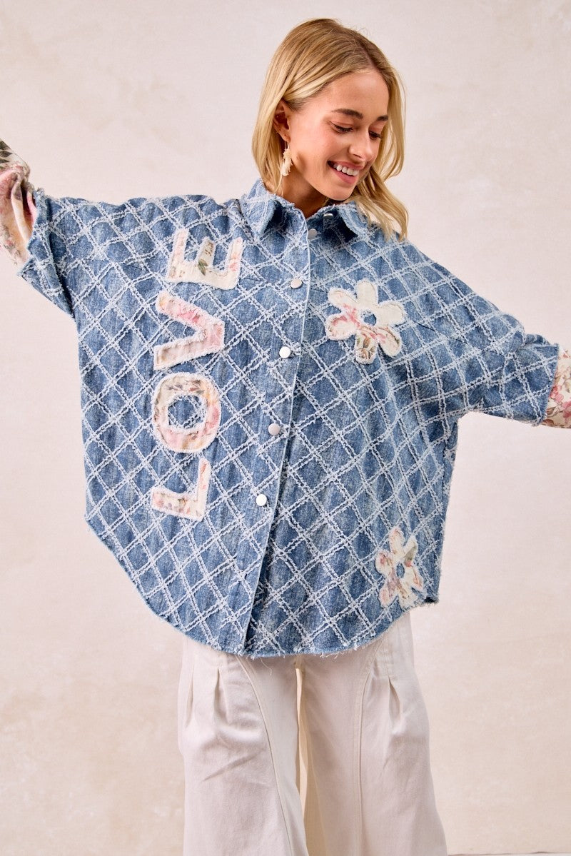 - LOVE Letter Patches and Flower Patches in Floral Twill