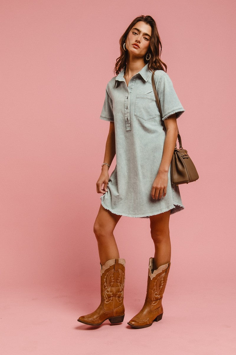 • Load image into Gallery viewer, BiBi Washed Twill Dress in Slate Blue