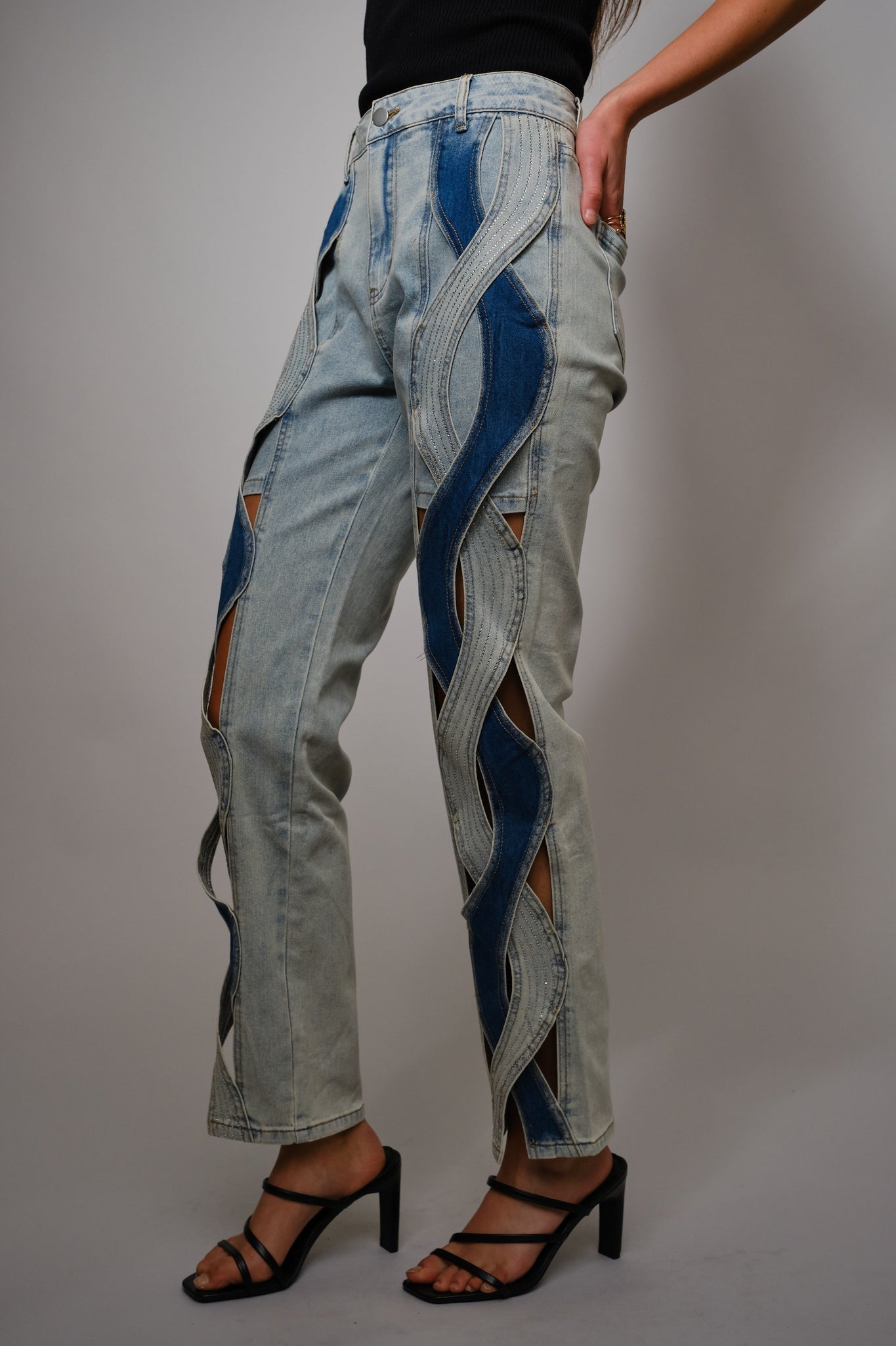 - Distinctive Wave Cut Out Pattern Panels in Two Tone Colorway