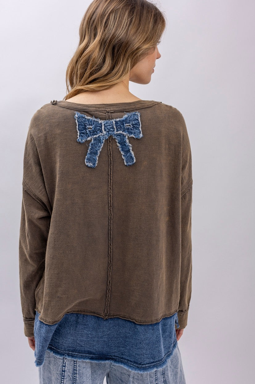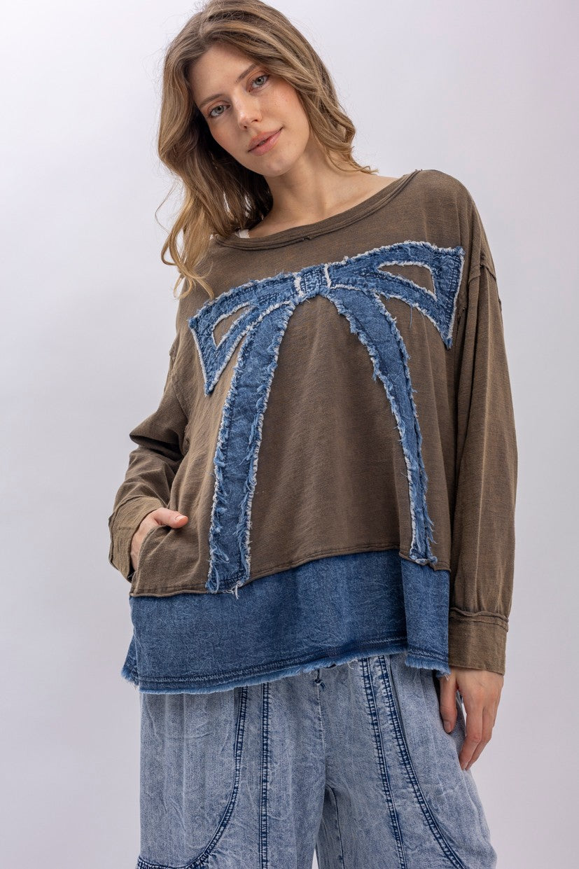 - Distressed Edge Large Bow Patch Front and Small Bow in Back