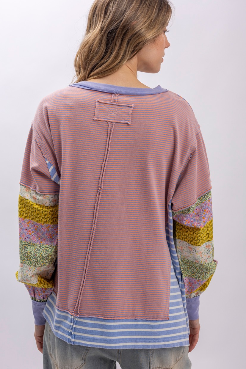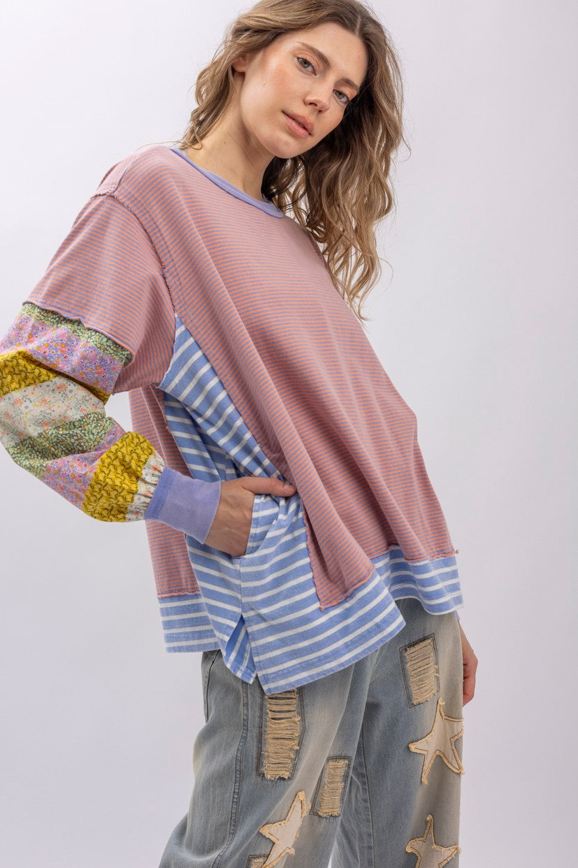 BlueVelvet Mixed Striped and Contrasting Print Top in Pink Multi