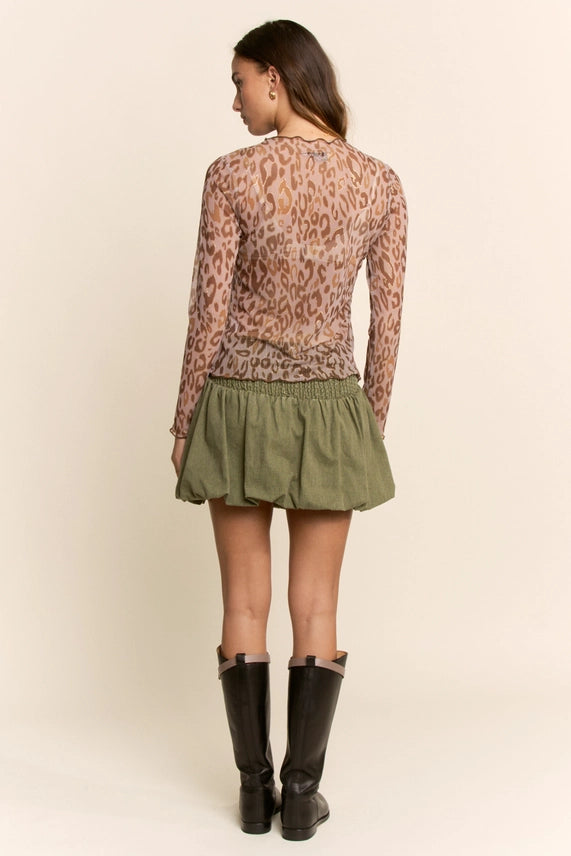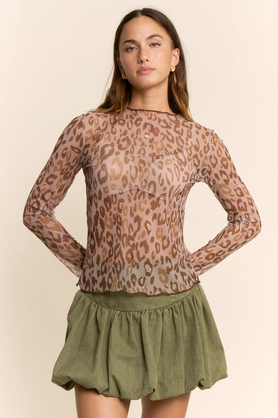 Davi & Dani Sheer Leopard Mesh Top in Taupe Leopard