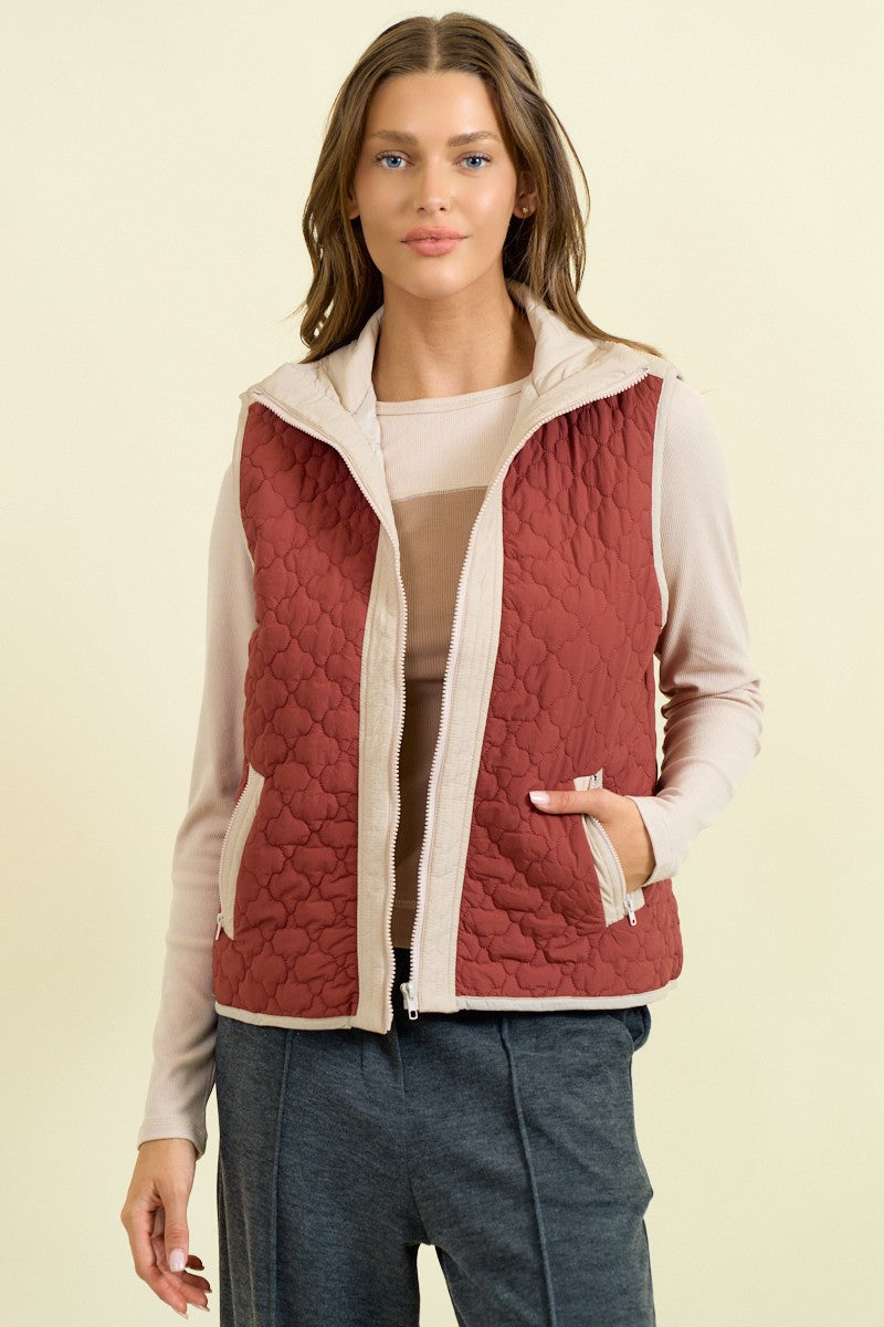 Doe & Rae Contrasting Color Quilted Vest in Brick