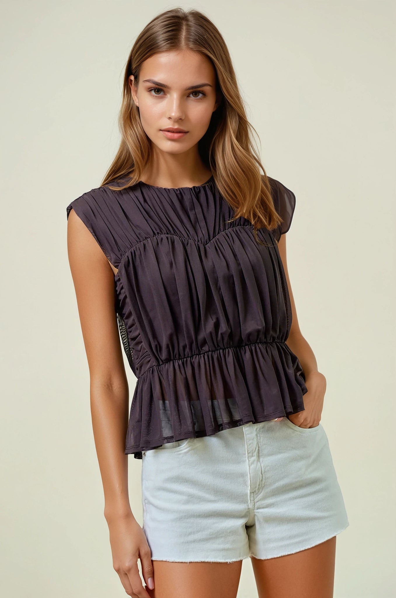 • Shirred Peplum Top