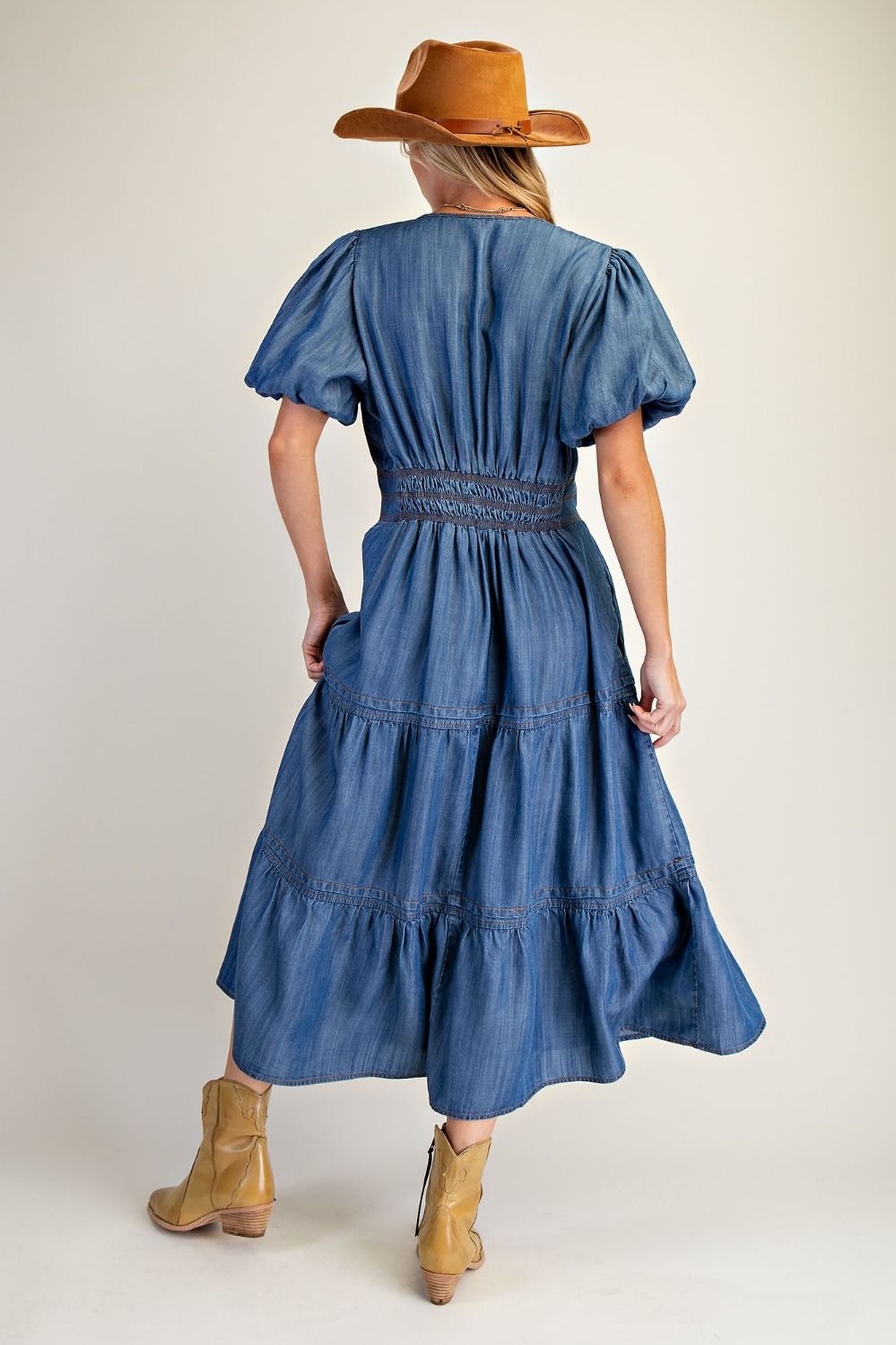 • Load image into Gallery viewer, Easel Denim Maxi Dress in Washed Denim
