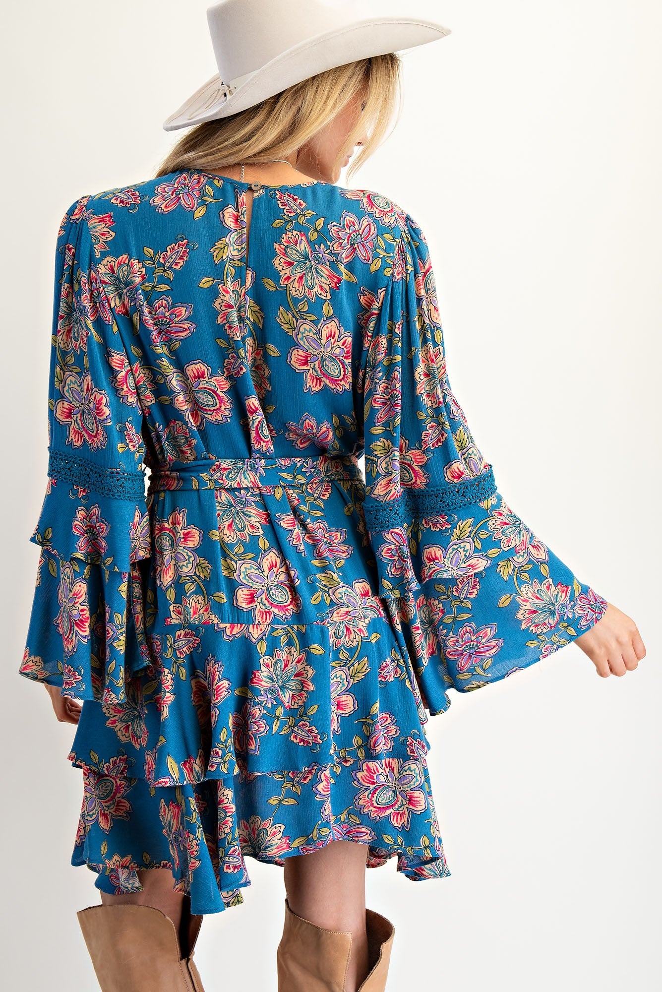 • Load image into Gallery viewer, Easel Exclusive Floral Print Mini Dress in Teal