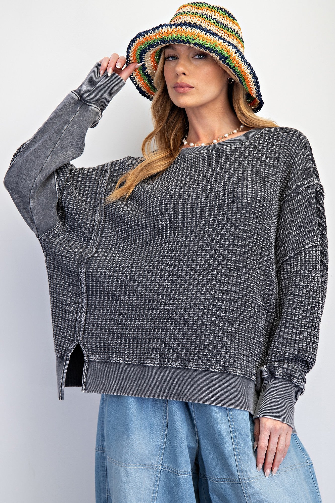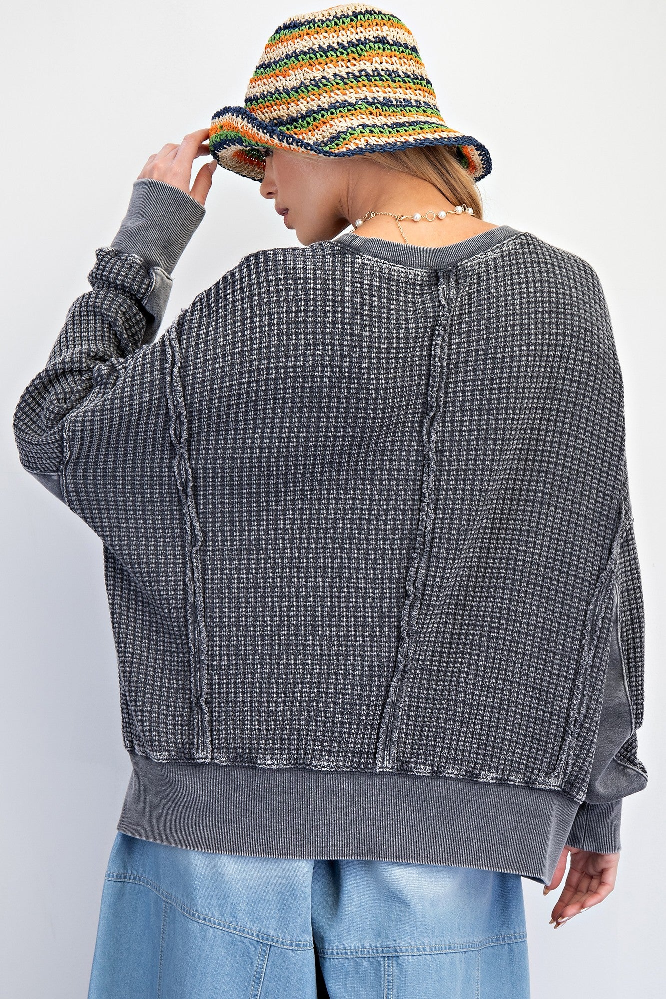 Easel Mineral Washed Thermal Knit Top in Ash ON ORDER