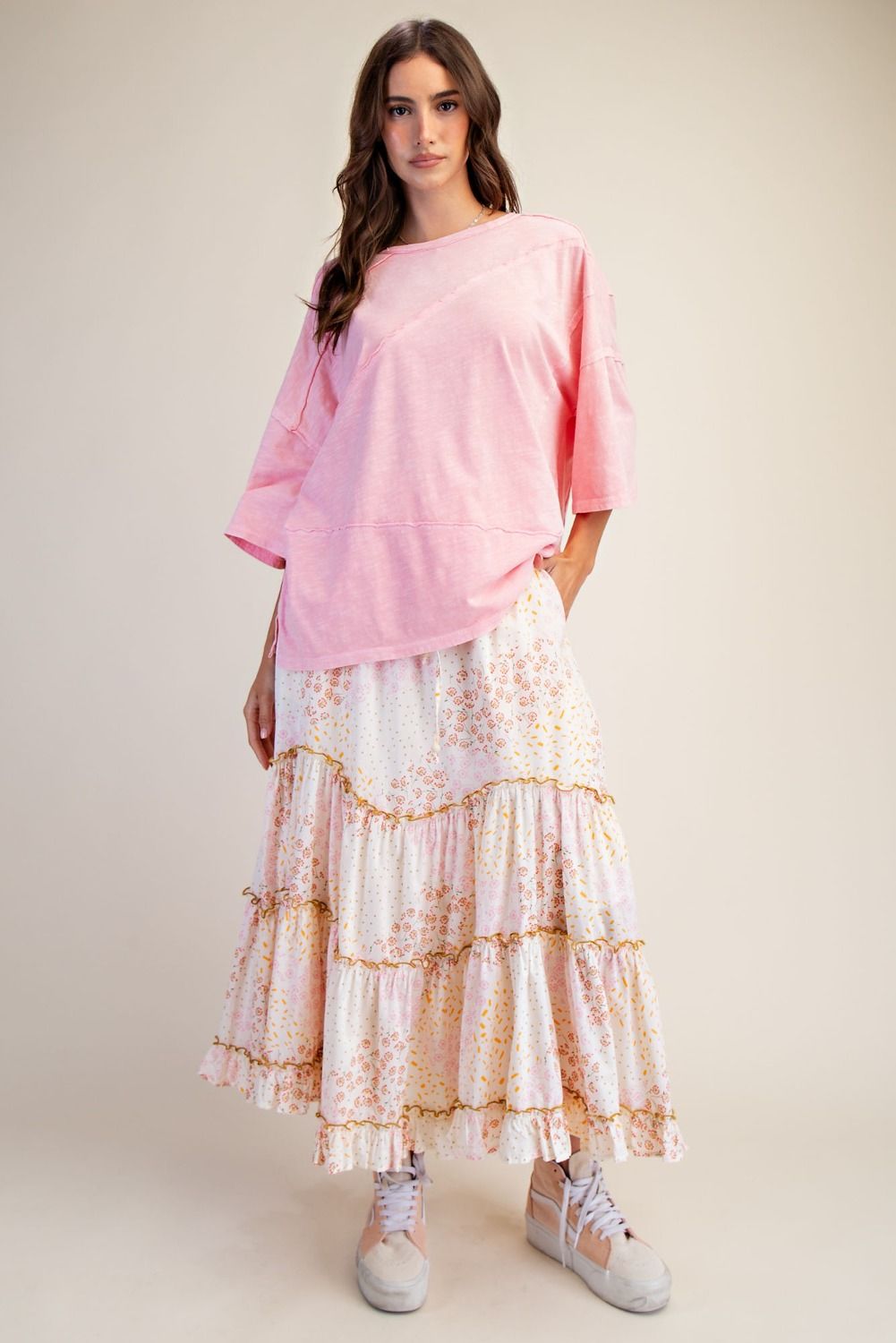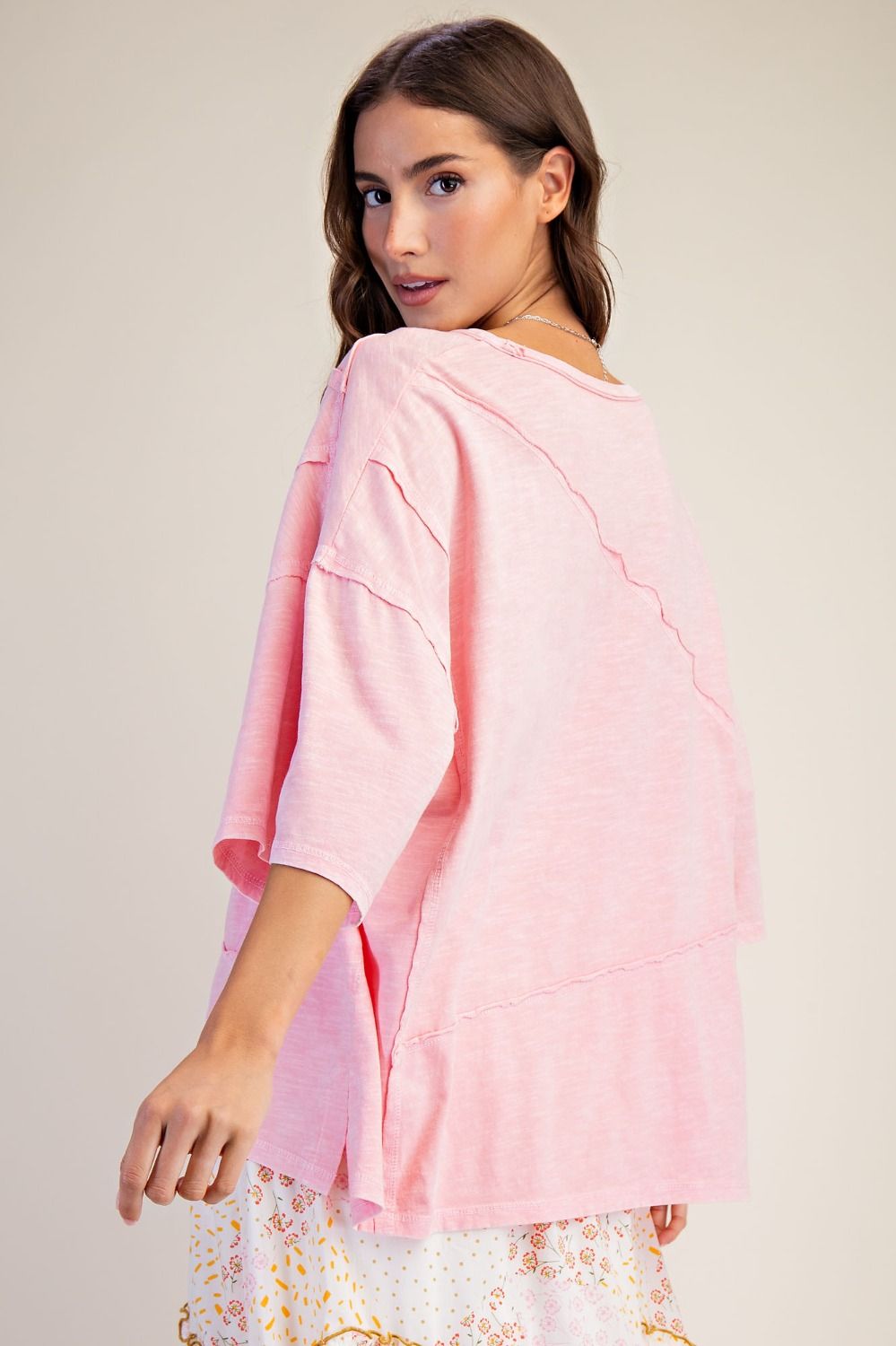 Easel OVERSIZED Mineral Washed Cotton Top in Pale Pink