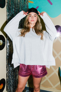 Fantastic Fawn OVERSIZED Solid Color Top with Contrasting Print Sleeves in Purple/Pink