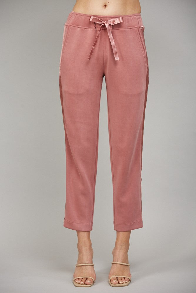 FATE Solid Color Pants with Satin Stripe Trim in Wood Rose
