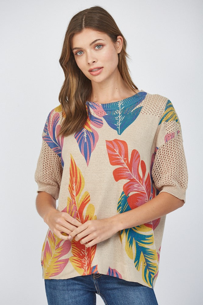 - Open Knit Details on Sleeves , Around Neck, and Shoulders