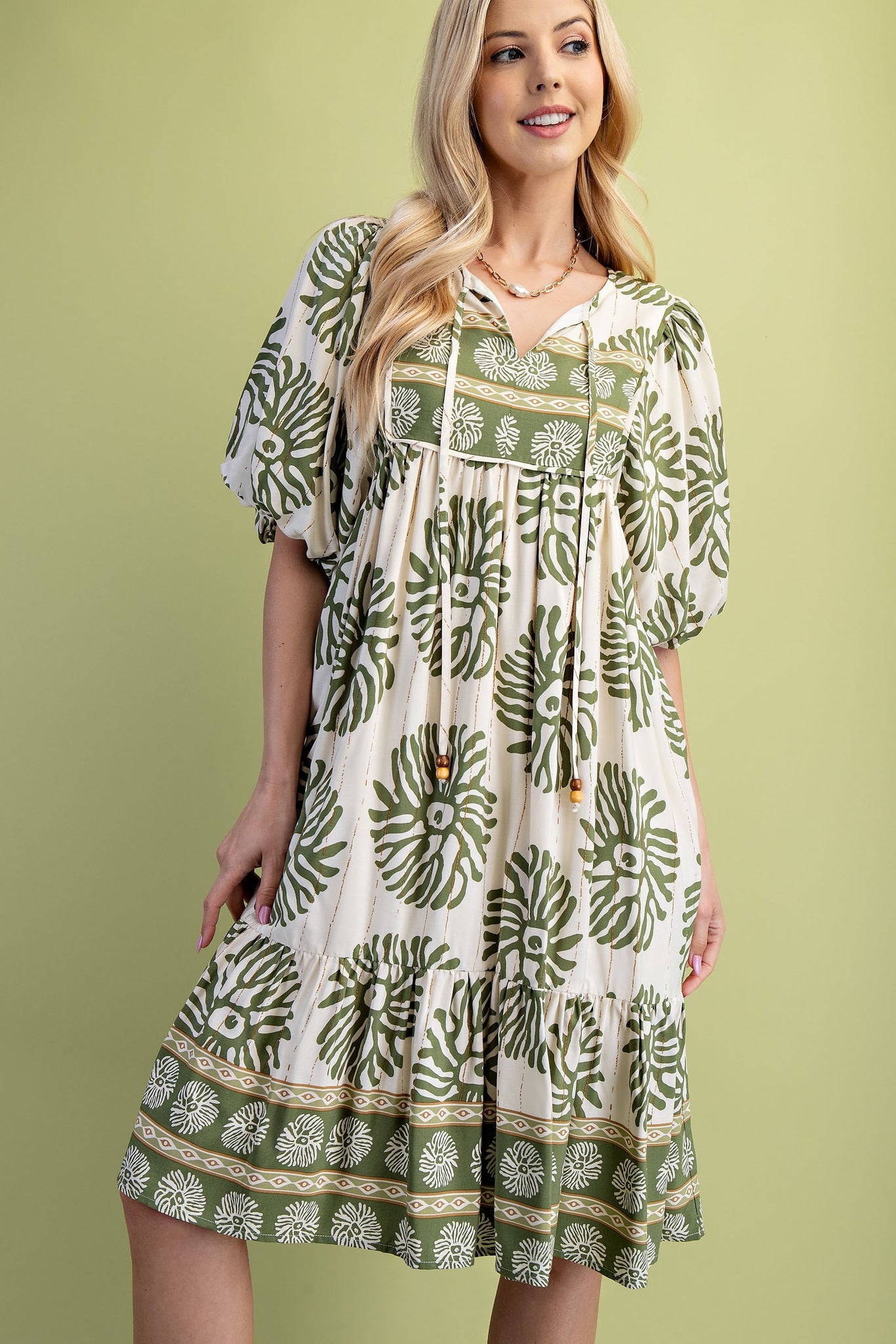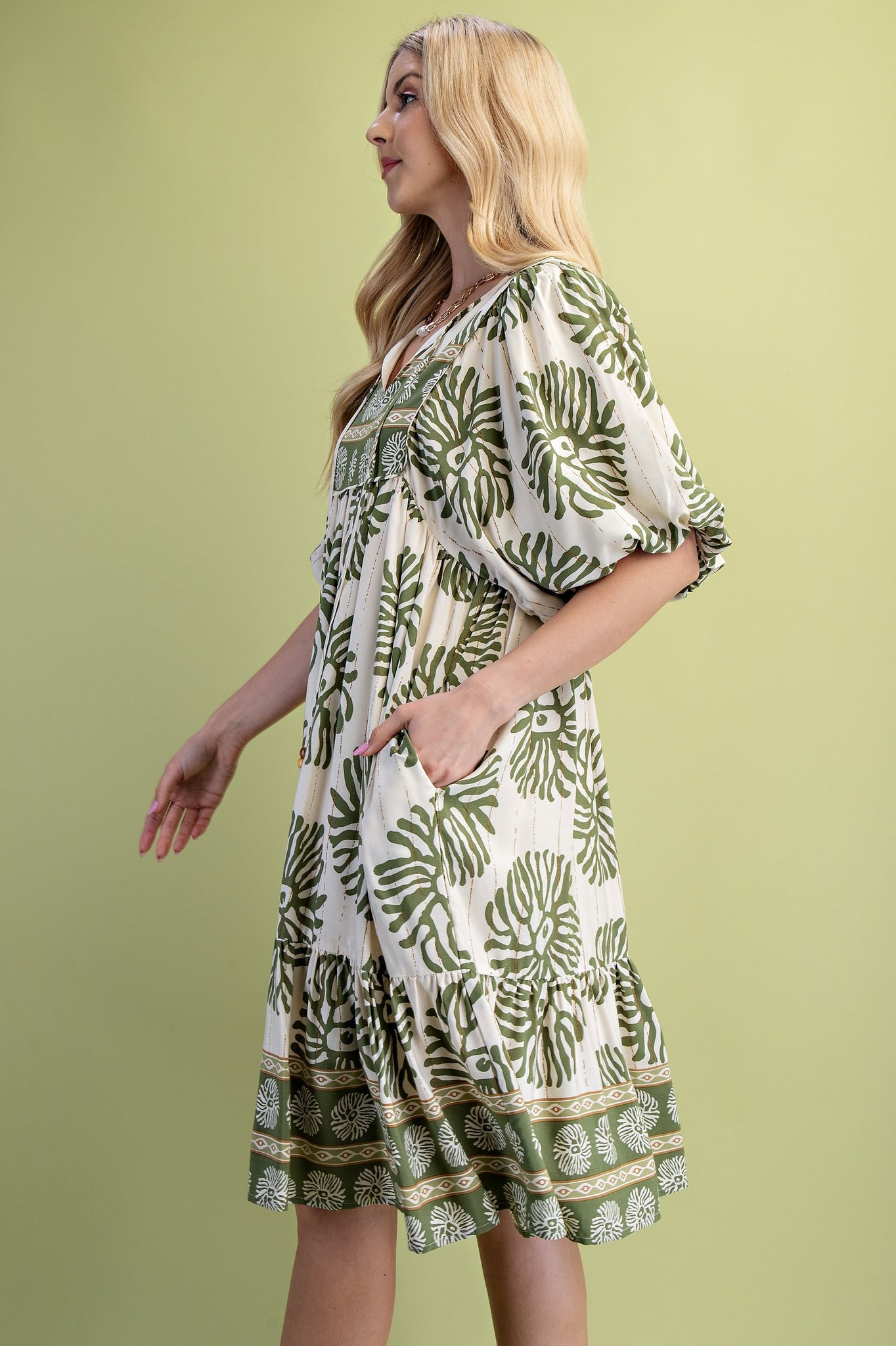 GiGio Contrasting Mixed Print Mini Dress in Sage