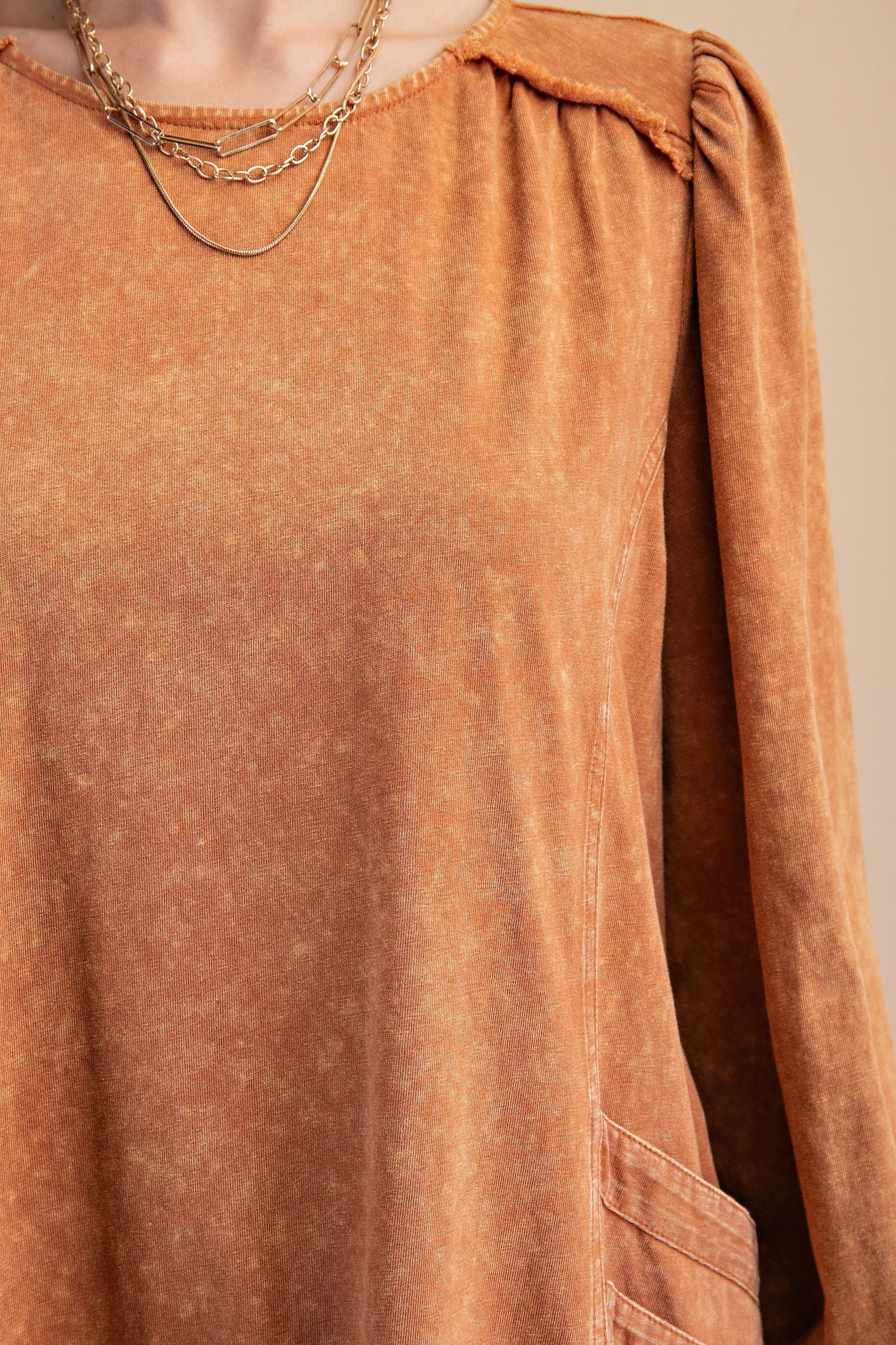 • Load image into Gallery viewer, GiGio Mineral Washed Cotton Dress in Caramel