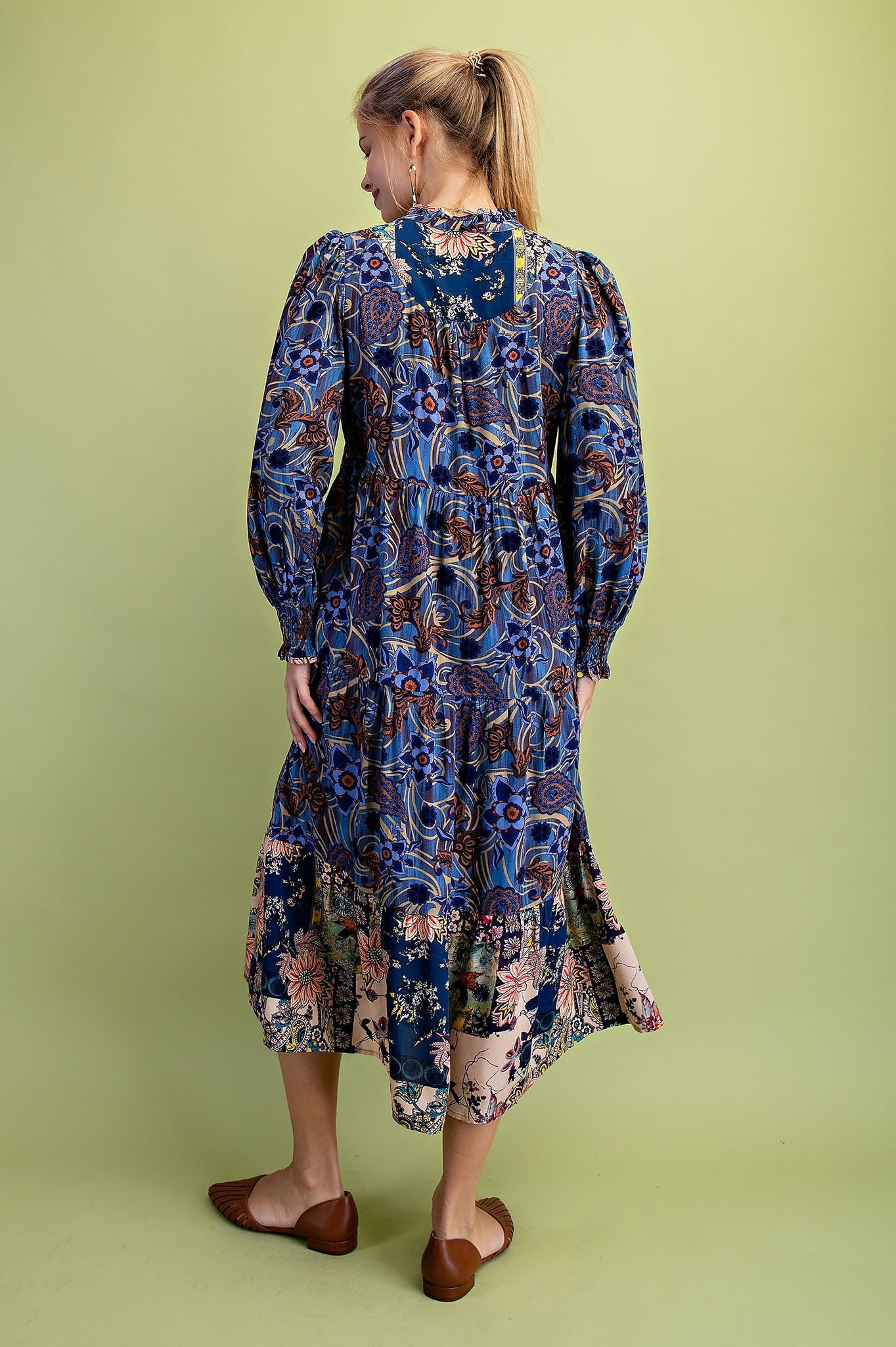 • Load image into Gallery viewer, GiGio Mixed Print Tiered Midi Dress in Midnight ON ORDER
