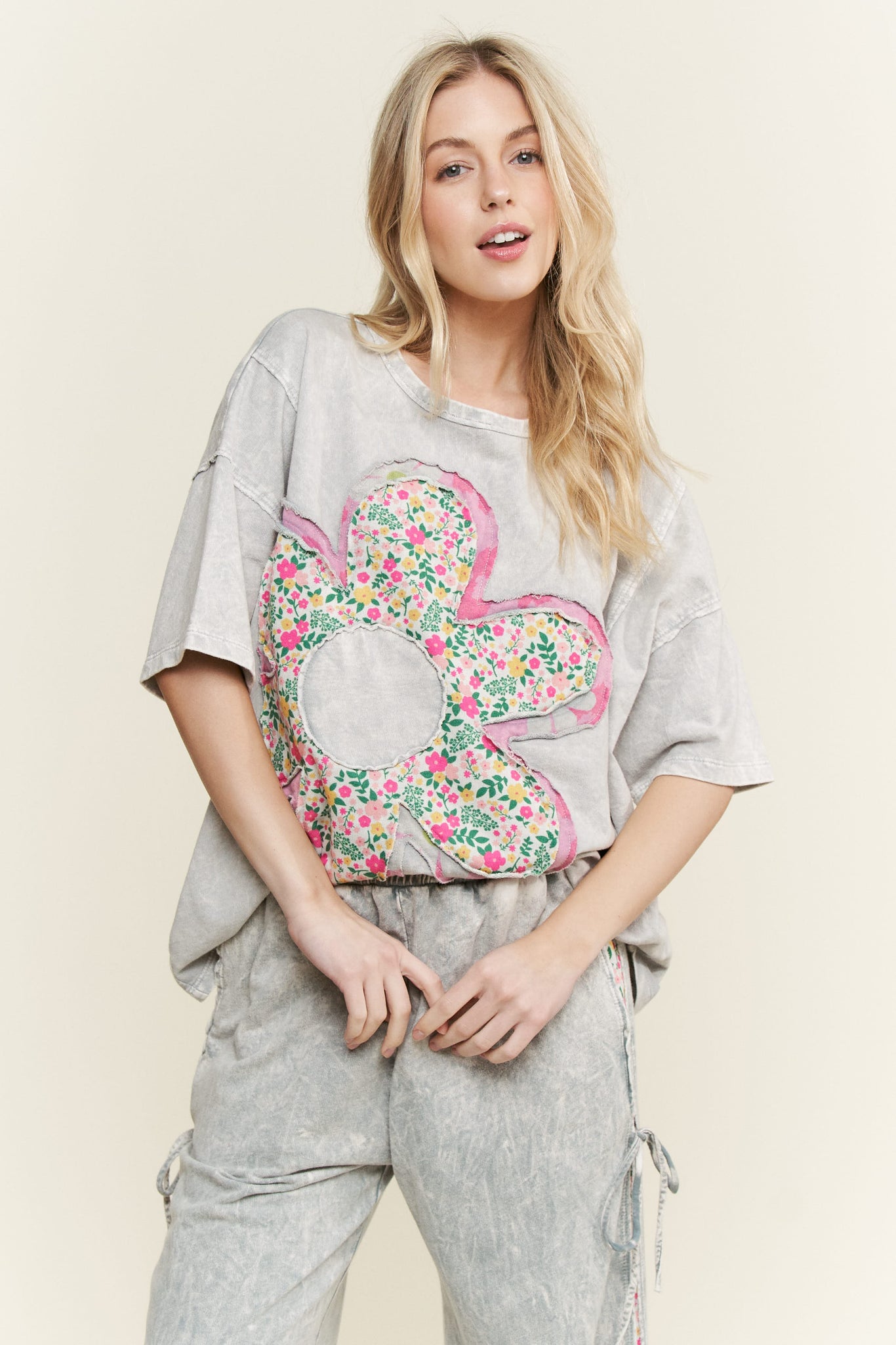 - Mixed Floral Print Flower Patch on Front