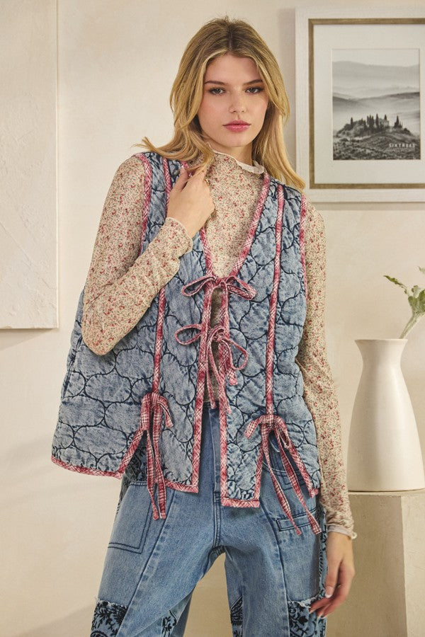 Oli & Hali Mineral Washed Quilted Puff Vest in Blue