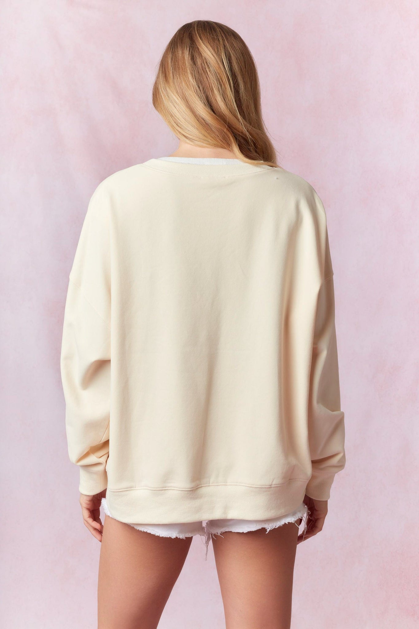 Peach Love Sweatshirt with Graphic Print Boot and Lace Bow in Cream