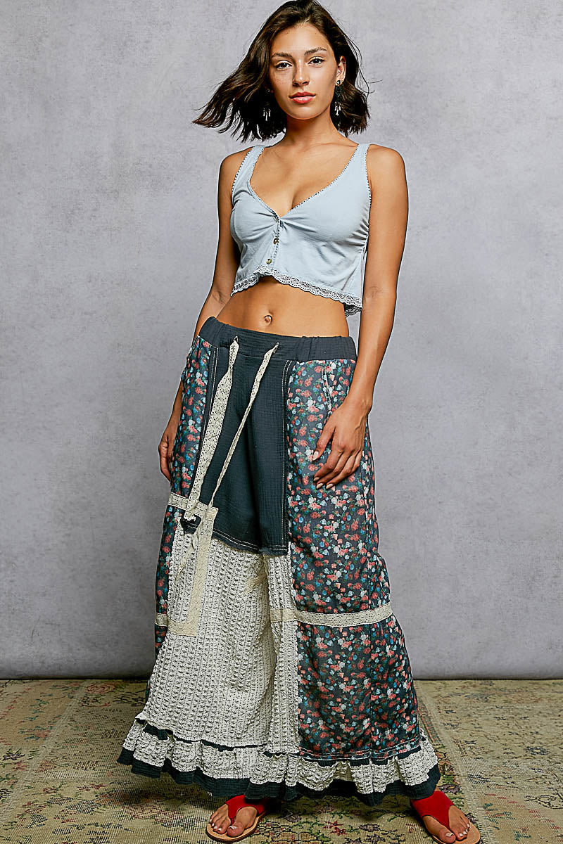 • Patches of Floral Print, Double Layered Gauze, and Lace