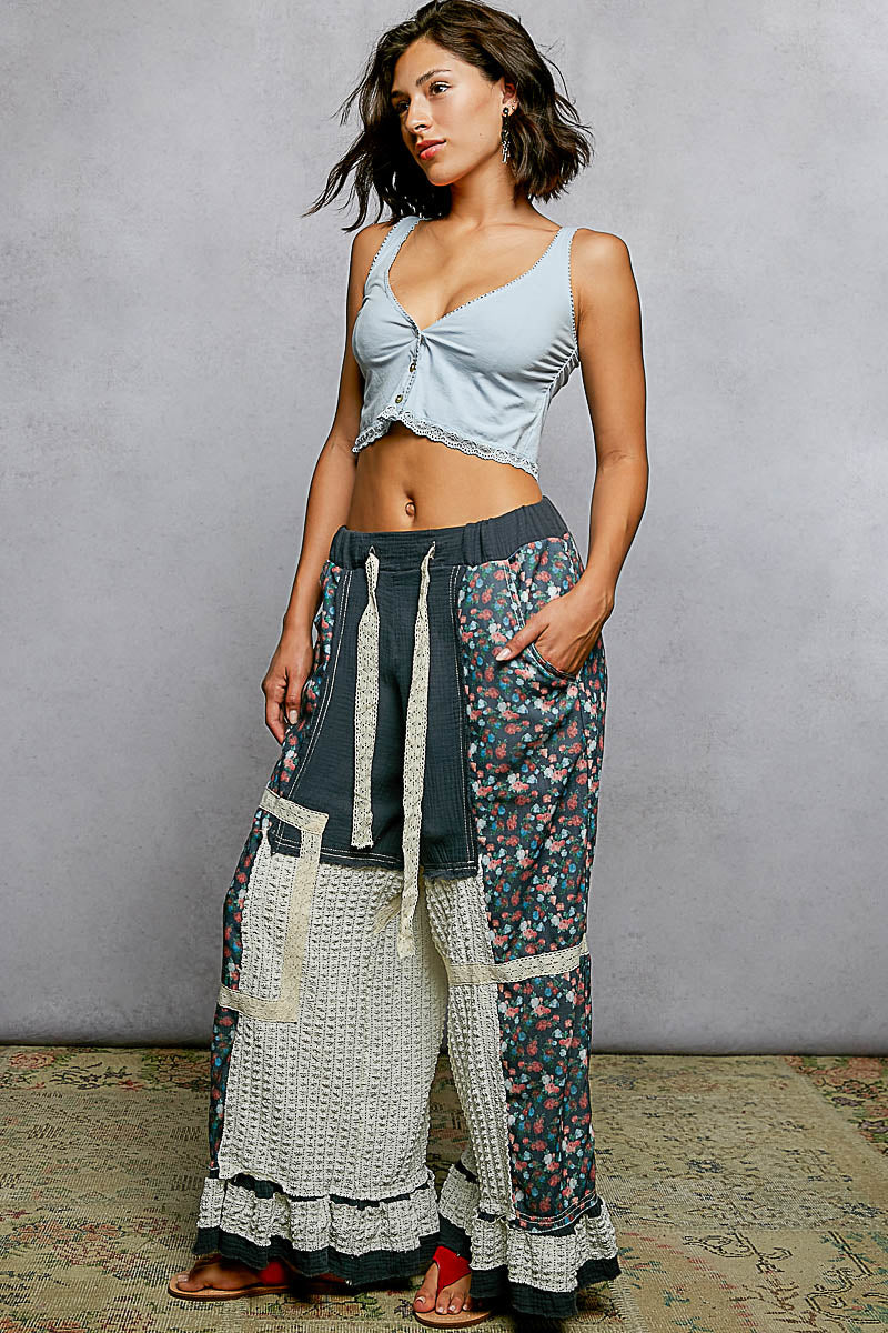 • Load image into Gallery viewer, POL Mixed Patchwork Pants in Navy