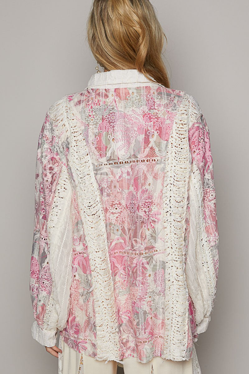 POL Oversized Floral Print Top in Ivory/Pink Shirts & Tops POL Clothing