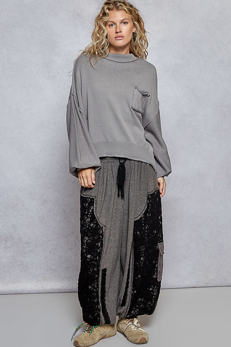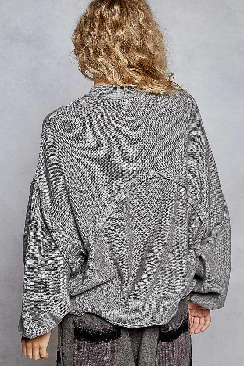 POL Solid Color Hacci Knit Sweater in Whisper Grey