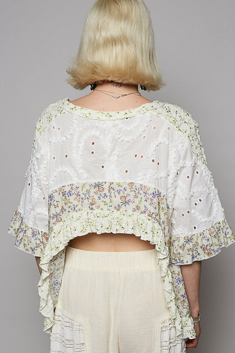 - Contrasting Floral Prints around Neck, Sleeves, and Hem
