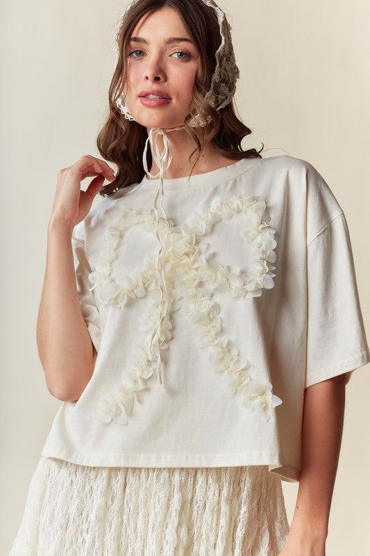 - 3D Floral Bow Applique on Front