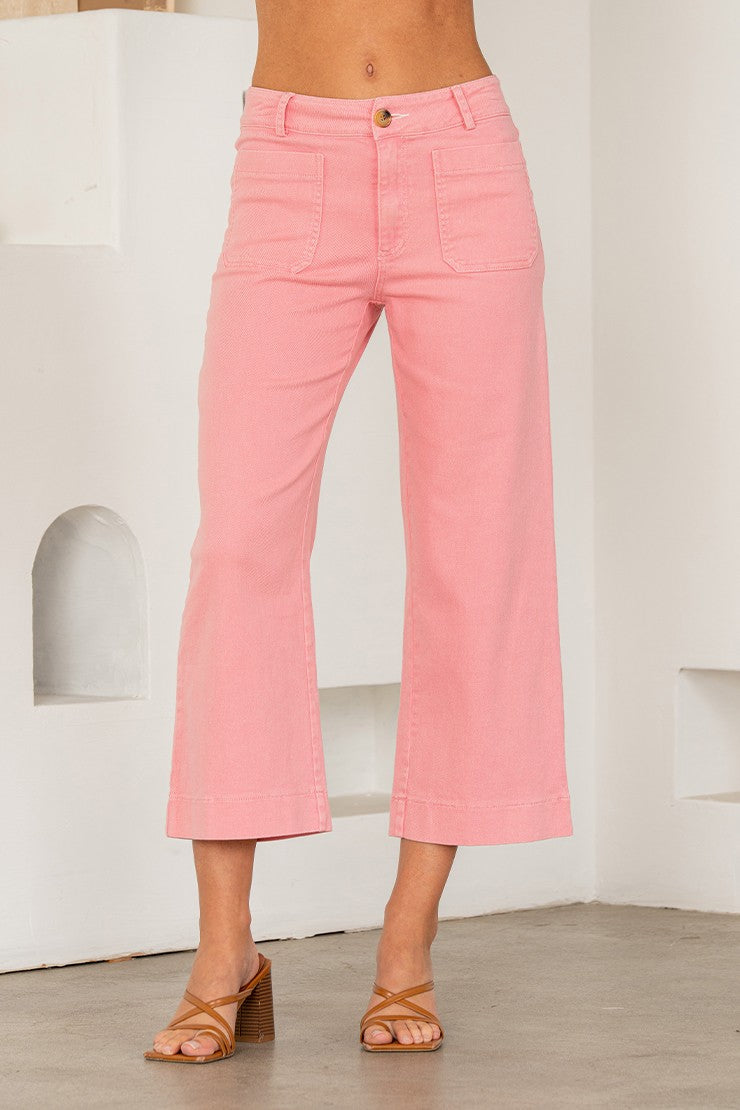 These cropped pants offer a laid-back yet polished look with their straight, wide-leg shape and neatly finished hem. Designed with front and back patch pockets, they add a subtle utility-inspired detail without sacrificing style. With a soft, easy feel, they’re a go-to choice for comfortable, everyday wear.