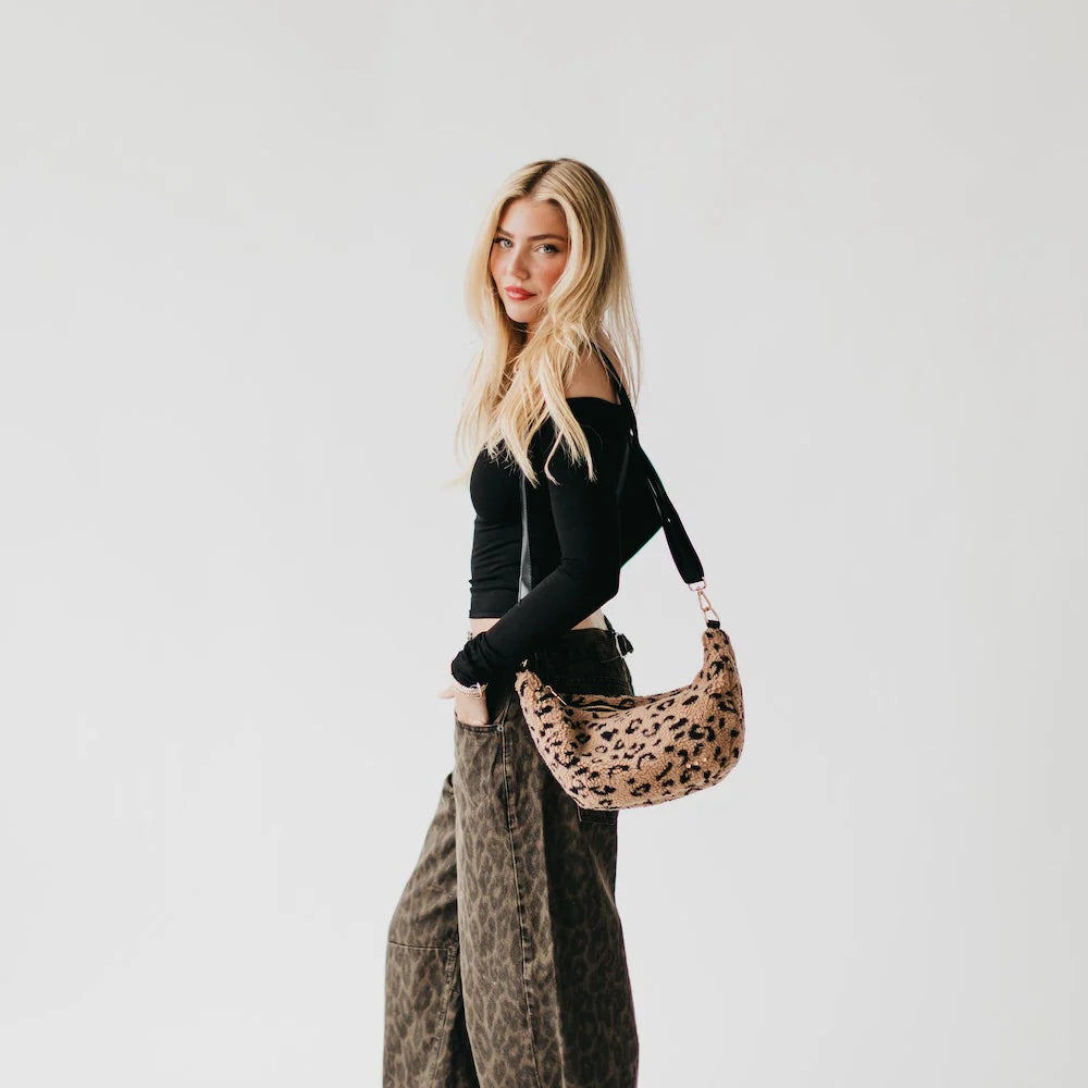 Snuggle up to style with our Shirley Sherpa Crossbody Bag! This accessory offers the perfect blend of cozy texture and roomie design. Available in fun prints, it's the fuzzy friend your outfit's have been waiting for. Soft to the touch but tough enough for everyday adventures!