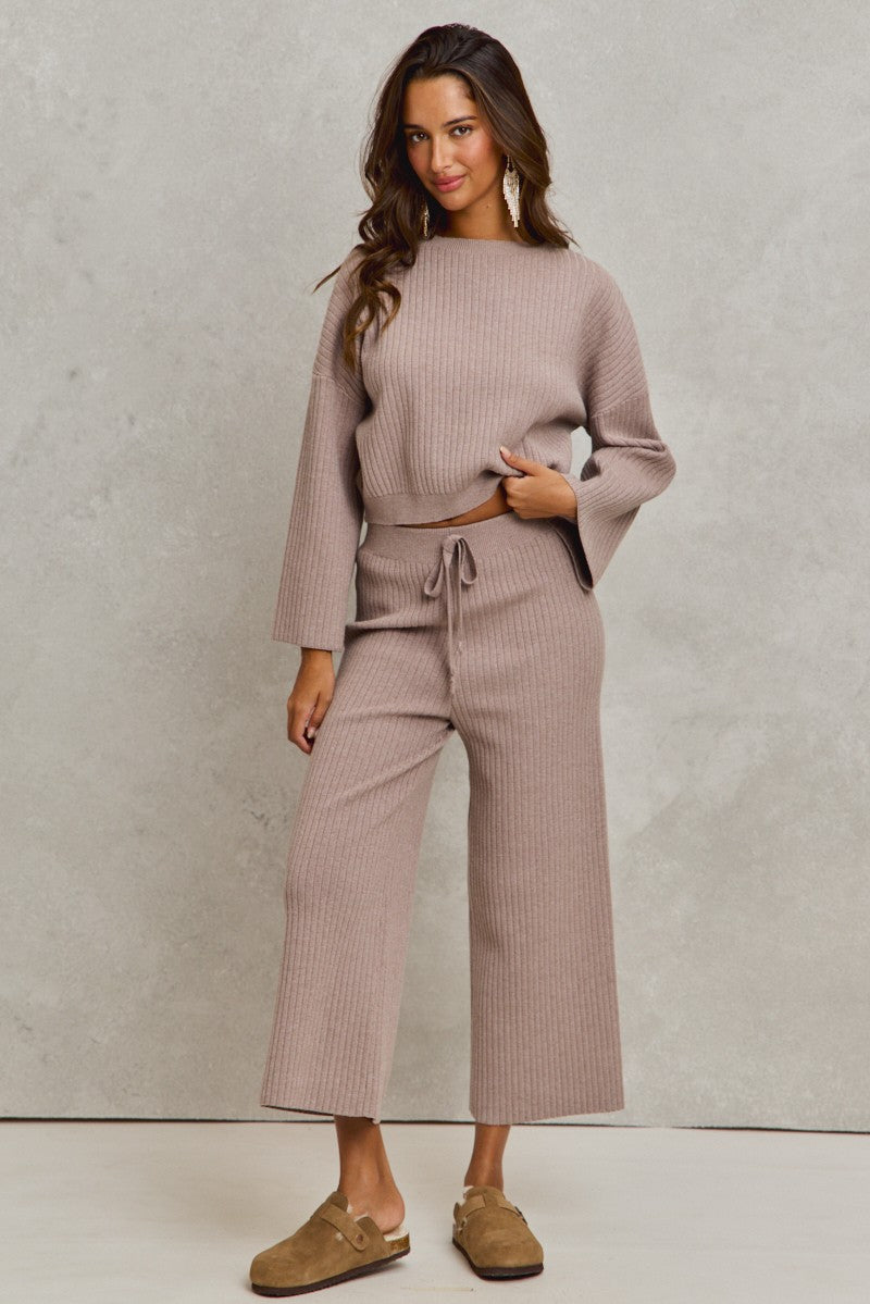 So Me Ribbed Knit Sweater Set in Ash Brown